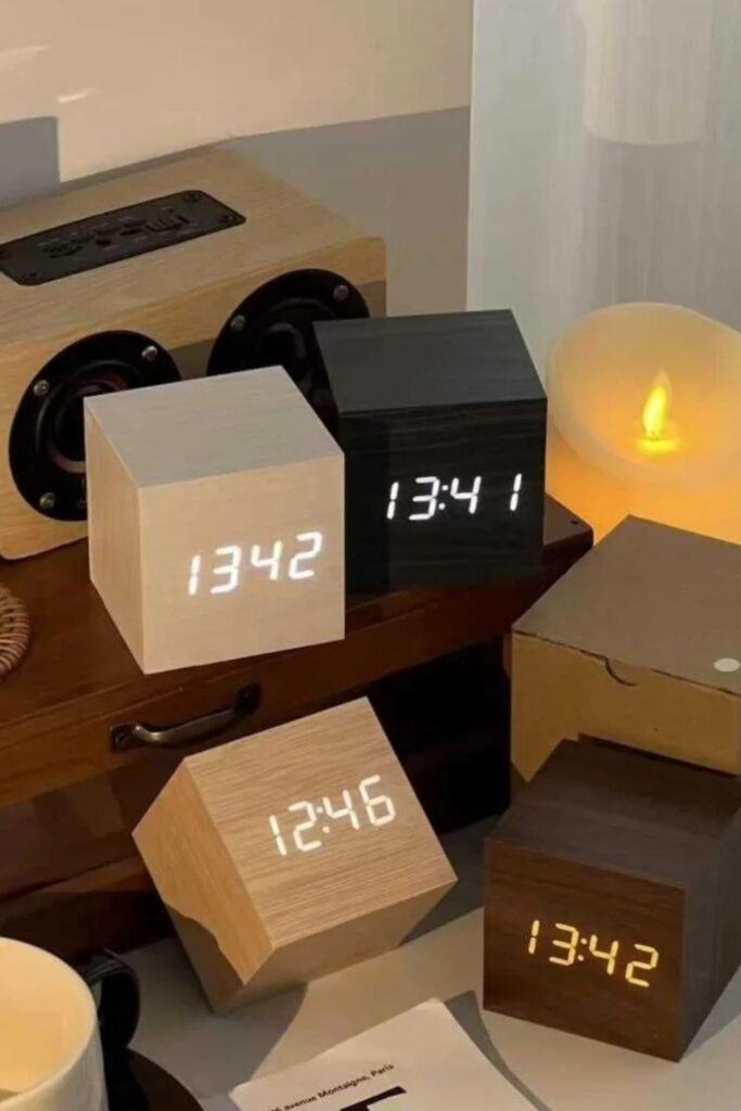 Wood-style digital clocks like these work best on nightstands, desks, or even kitchen counters. The clean square shape blends into modern, minimal, or neutral rooms without screaming “tech.”