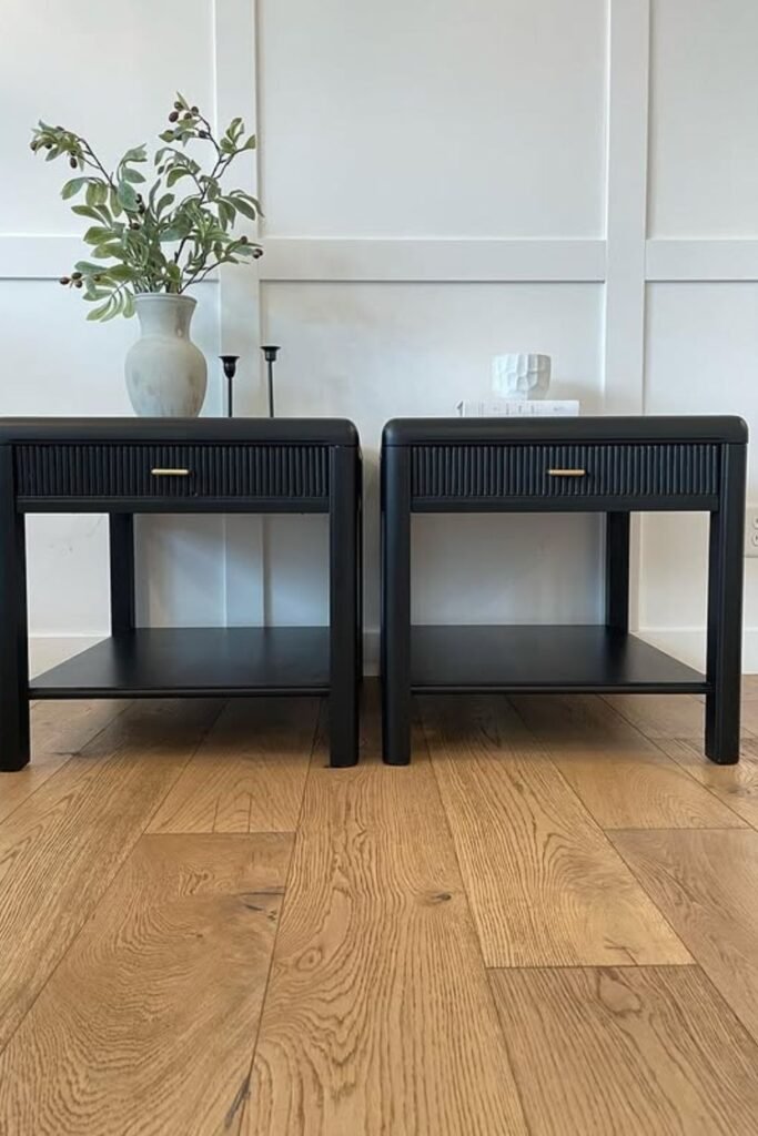Plain side tables disappear. Texture makes them stand out. Fluted drawer fronts like these add depth without adding bulk.