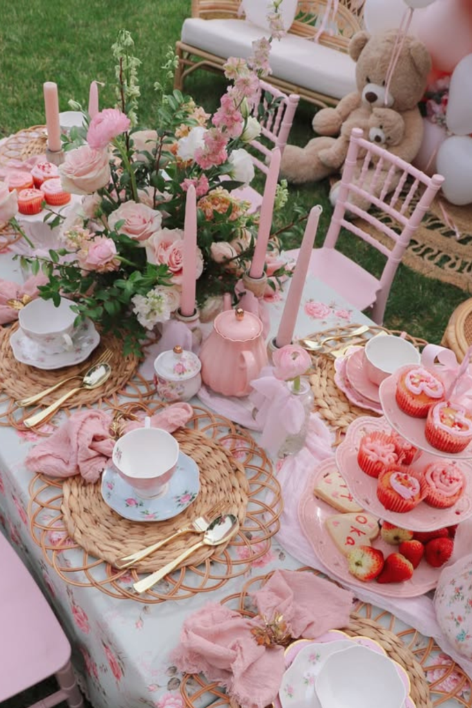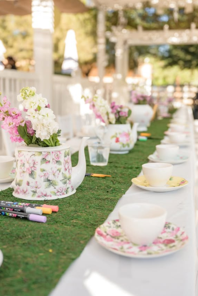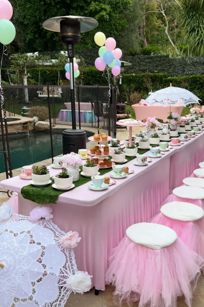 This keeps the setup from tipping into “party decor” and brings it back to a refined tea party feel with personality.