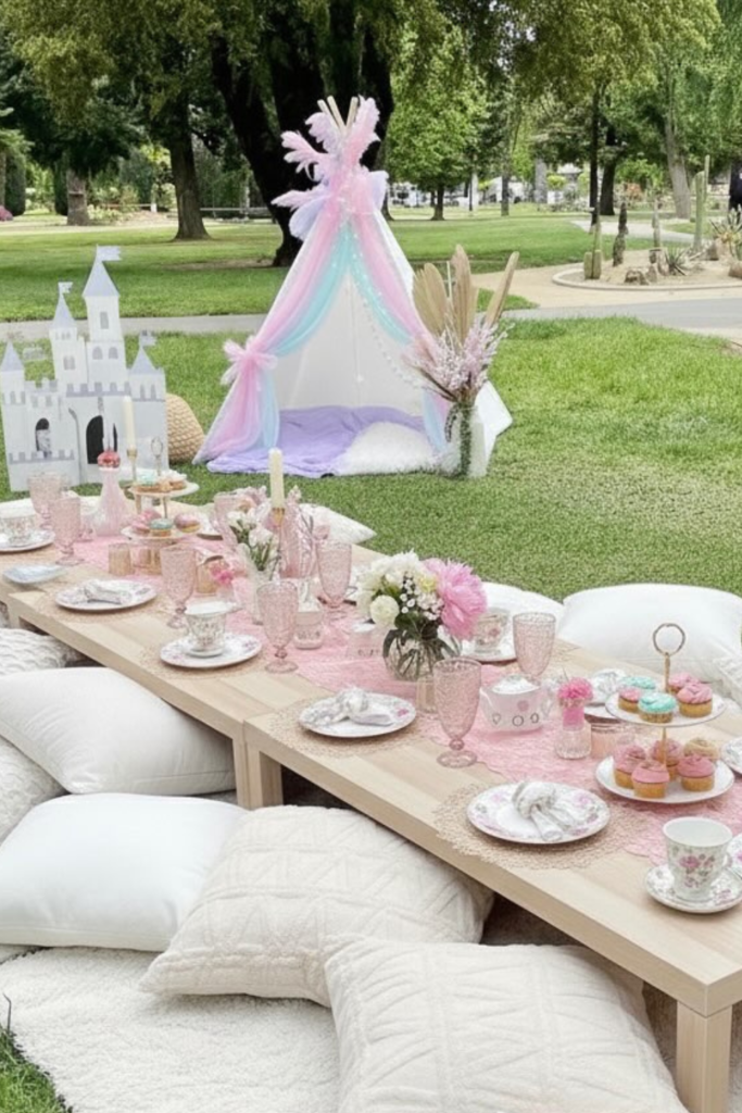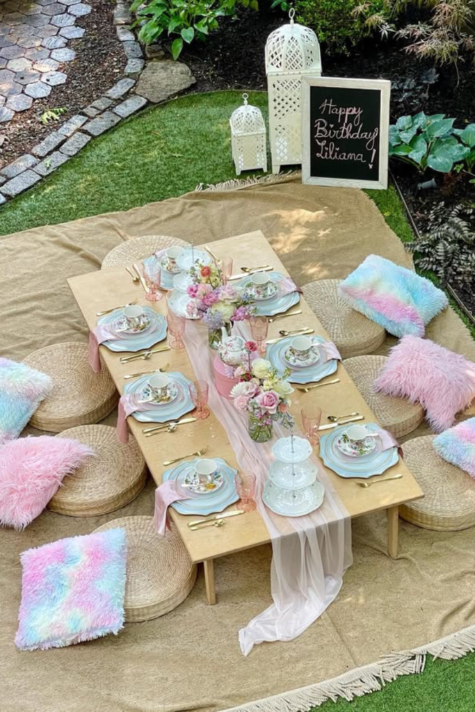 If you’re aiming for cozy instead of formal, a low picnic-style tea setup changes the entire vibe.