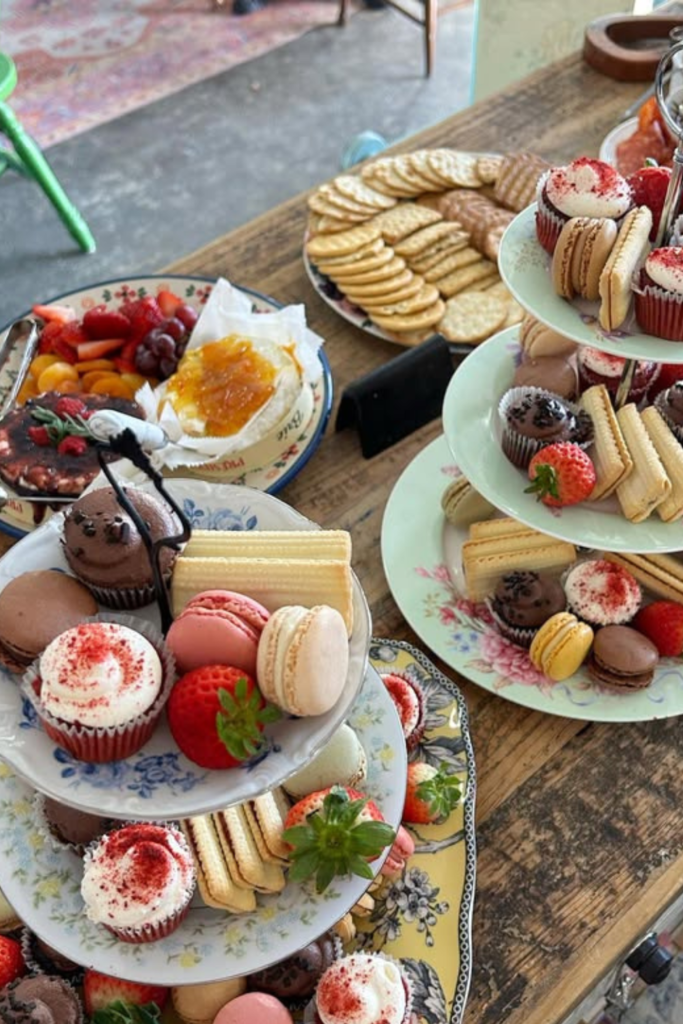 If you want one detail to instantly signal “tea party,” make it the dessert display.