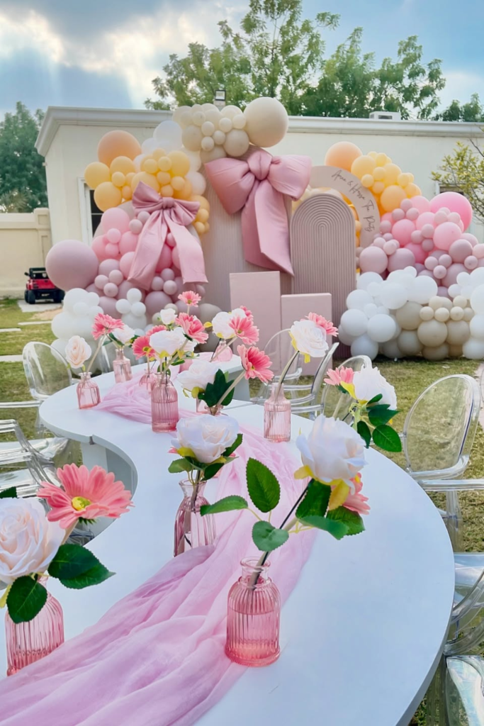 Stick to soft, coordinated colors so the balloons enhance the theme instead of turning it into a kids’ party.