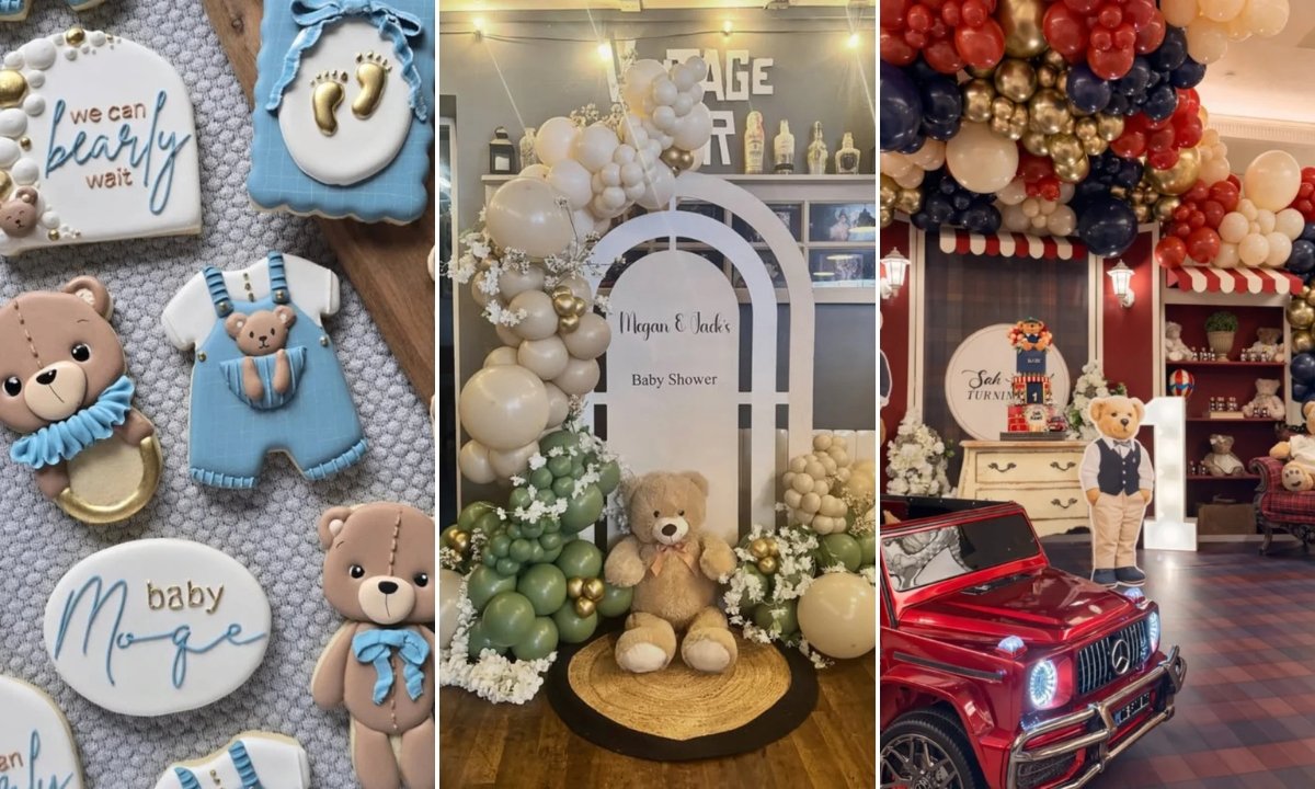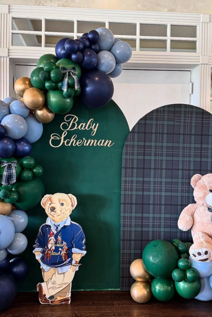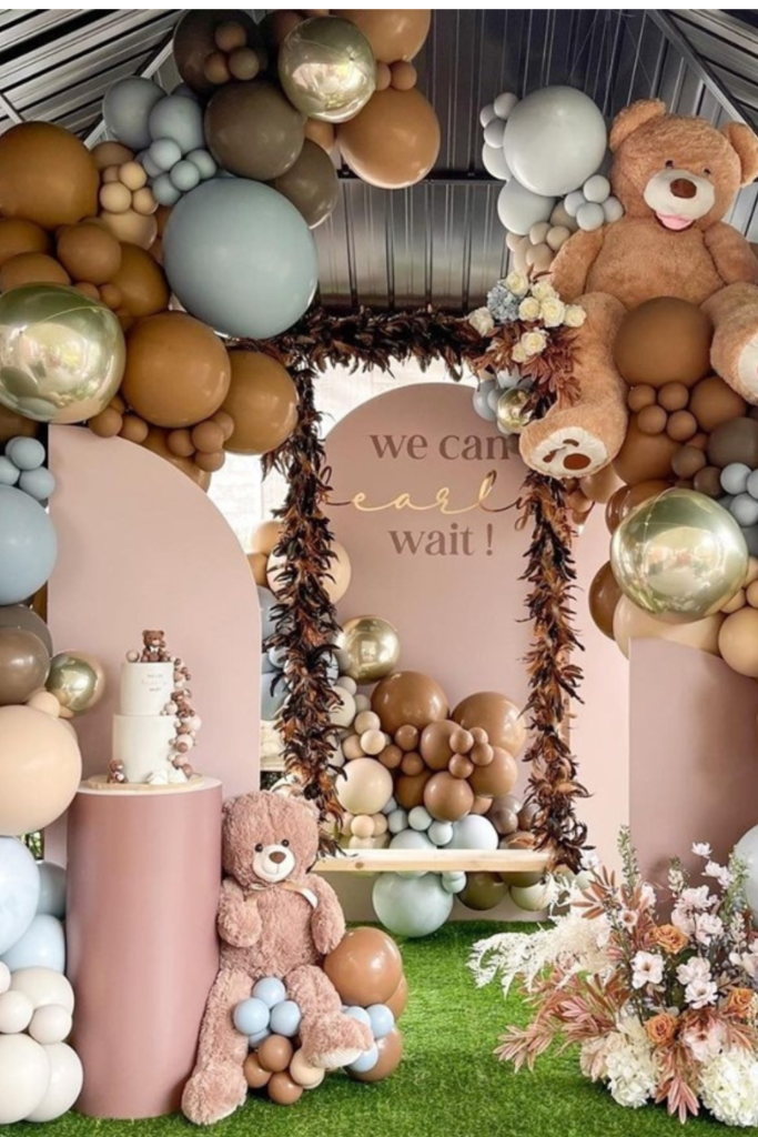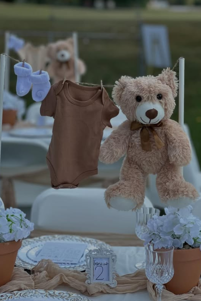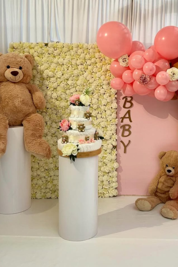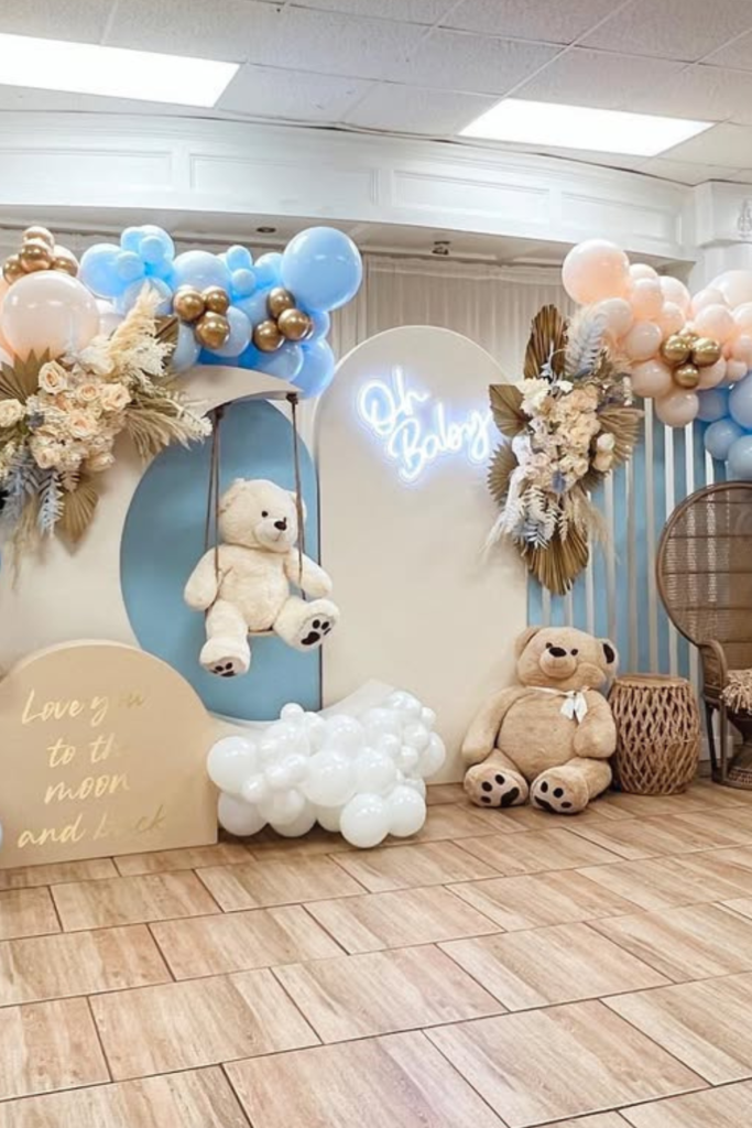 If you want something timeless that works for any baby shower, a neutral teddy bear setup is always a safe choice.