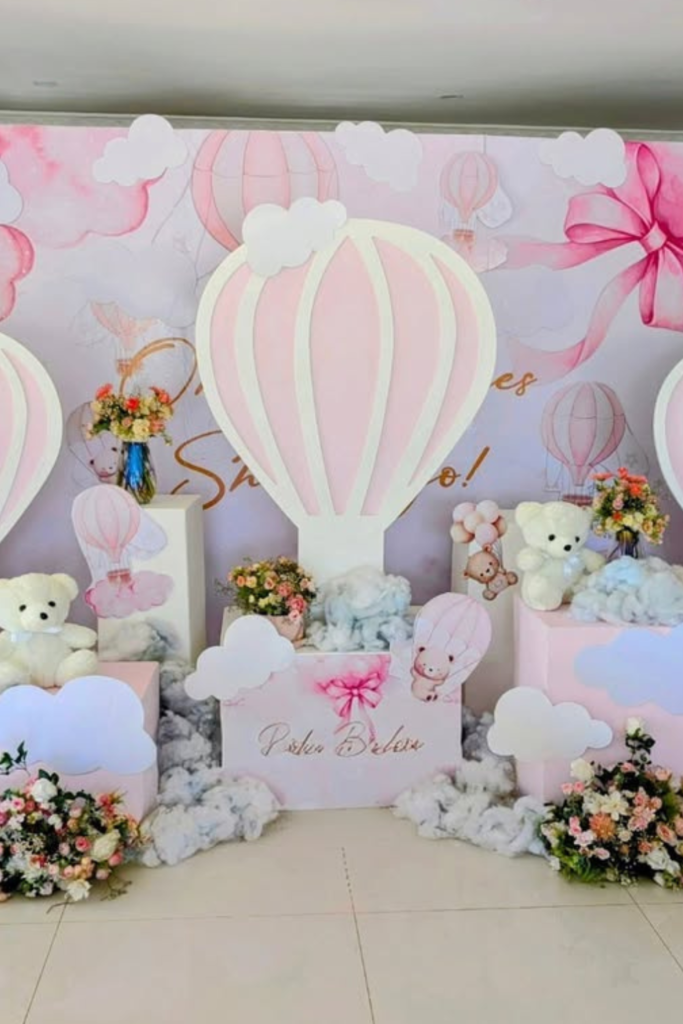 It’s a fun approach if you want the baby shower to feel more like an immersive party rather than just a decorated table.