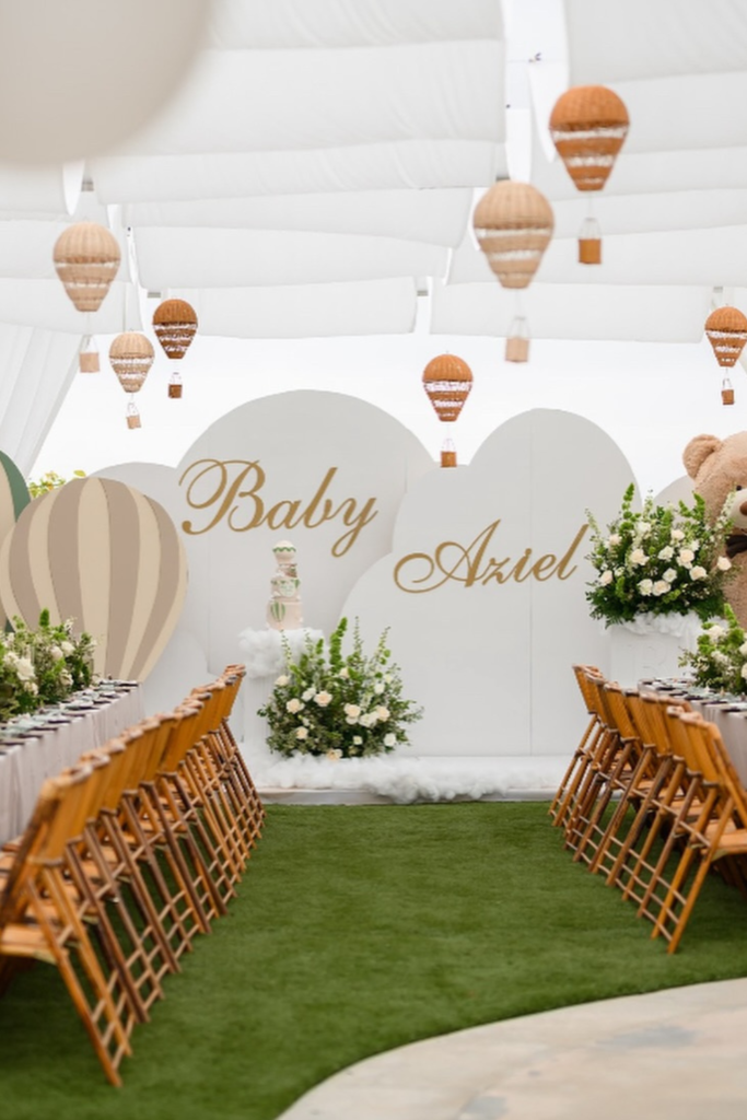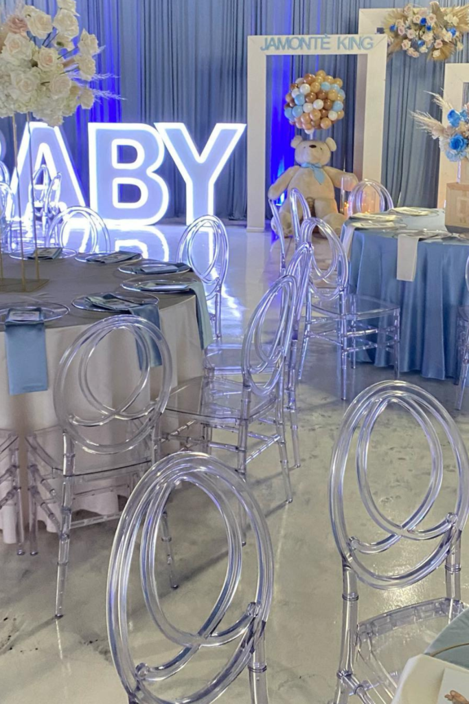 Personal touches like the baby’s name on the backdrop, custom cookies, or themed centerpieces also help the celebration feel more thoughtful and special.