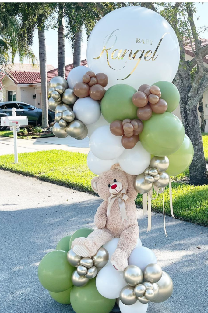 If you’re hosting the baby shower outdoors, a swing framed with balloon clusters can turn the teddy bear theme into something magical.