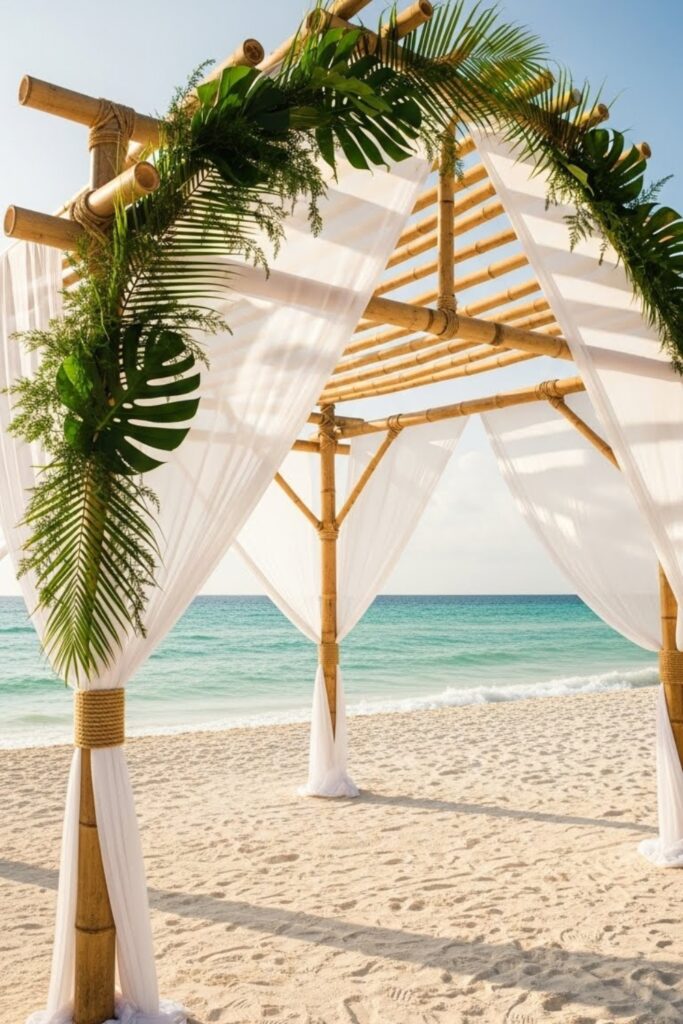 Bamboo works beautifully for outdoor weddings because it feels natural, lightweight, and sturdy enough to handle wind or seaside conditions easily.