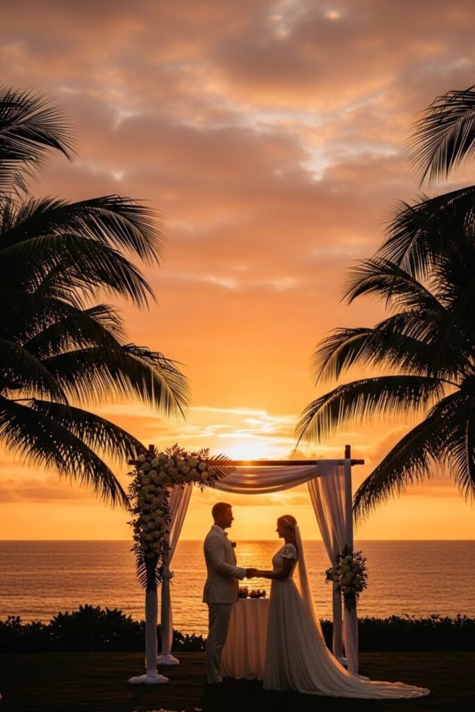 This works especially well for tropical locations where sunsets feel dramatic, colorful, and unforgettable for both you and guests attending present.