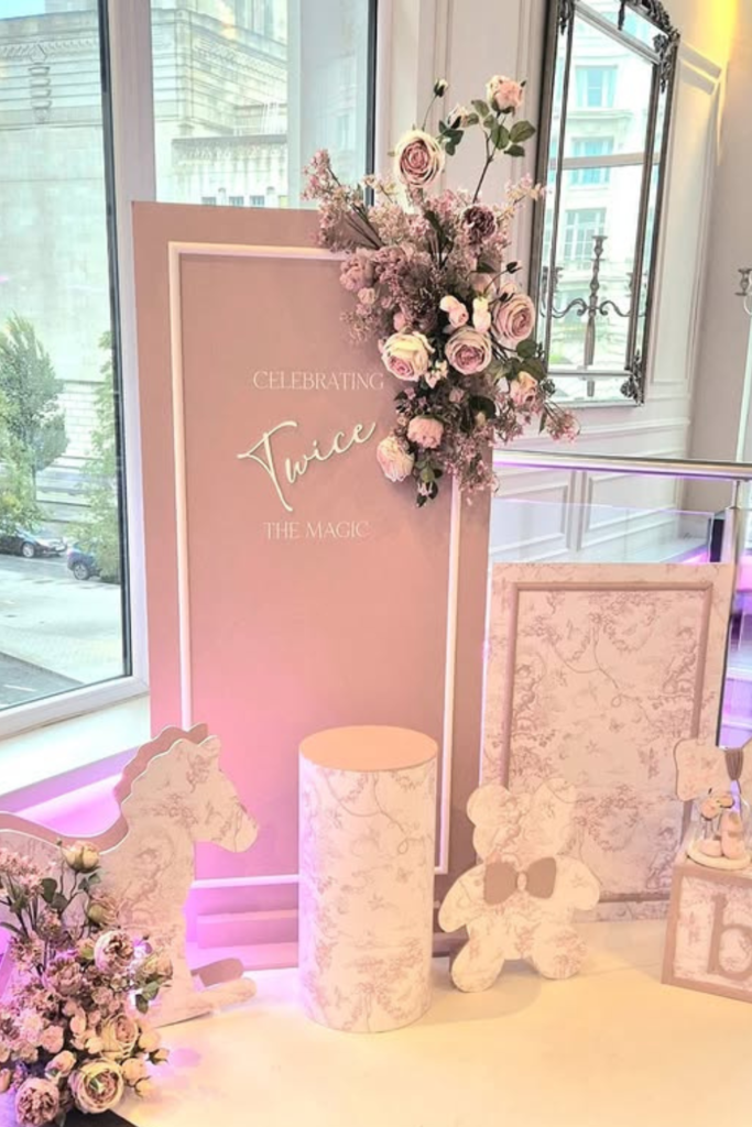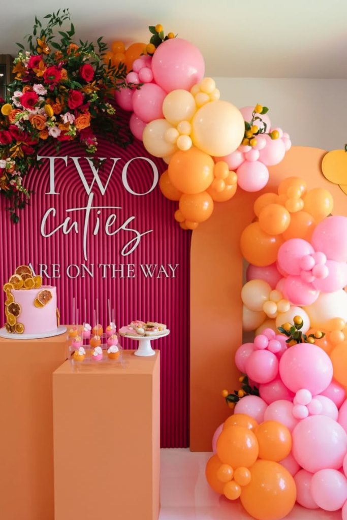 The goal isn’t to create two parties -it’s to celebrate two babies within one beautifully unified design.
