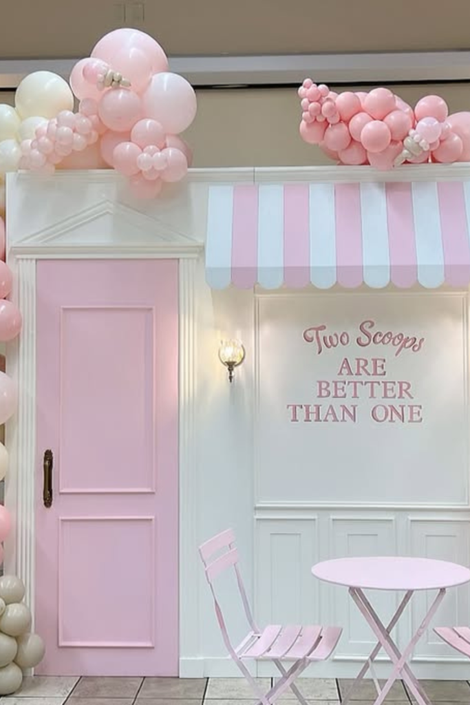 “Two Scoops Are Better Than One” works beautifully when you style the backdrop like a pastel café.