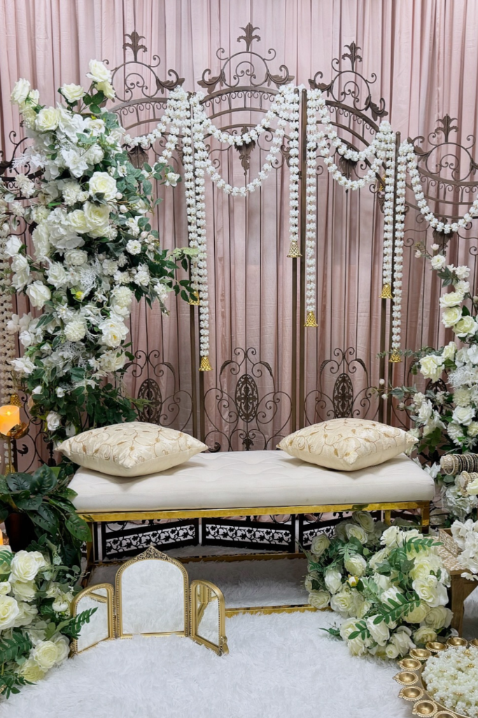 This setup works especially well for evening showers or cultural celebrations where elegance matters.