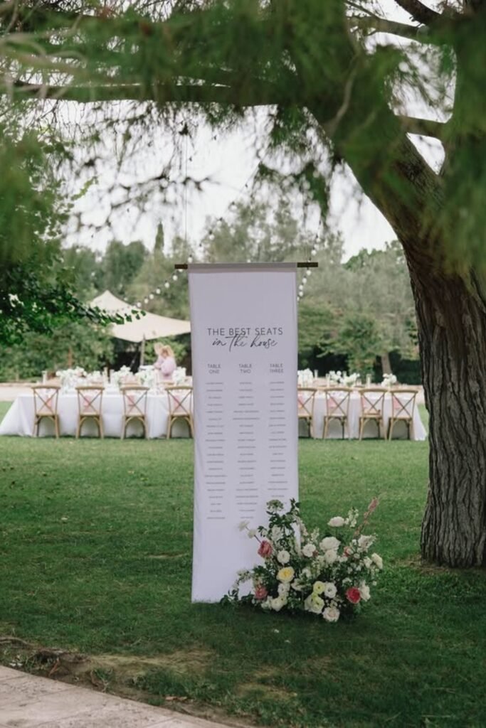 A well-placed welcome sign or seating chart keeps things flowing without announcements, staff interruptions, or confusion when guests arrive at different times.