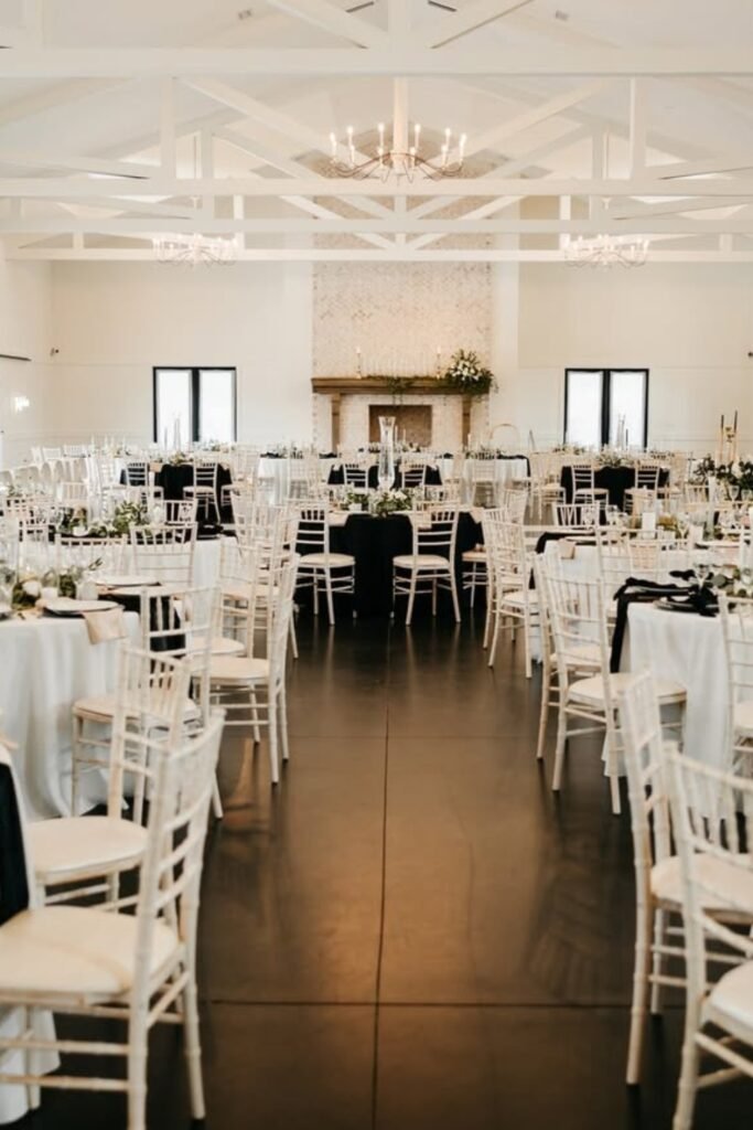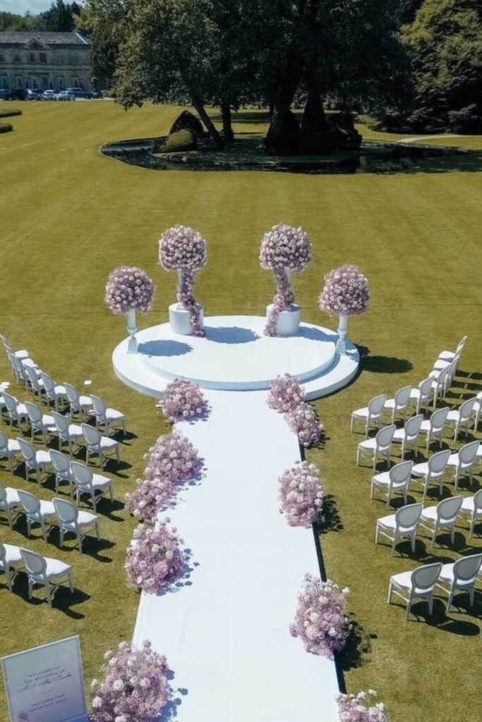 These venues work best when seating follows clean rows, florals stay low, and pathways feel intentional, guiding guests naturally toward the ceremony moment.