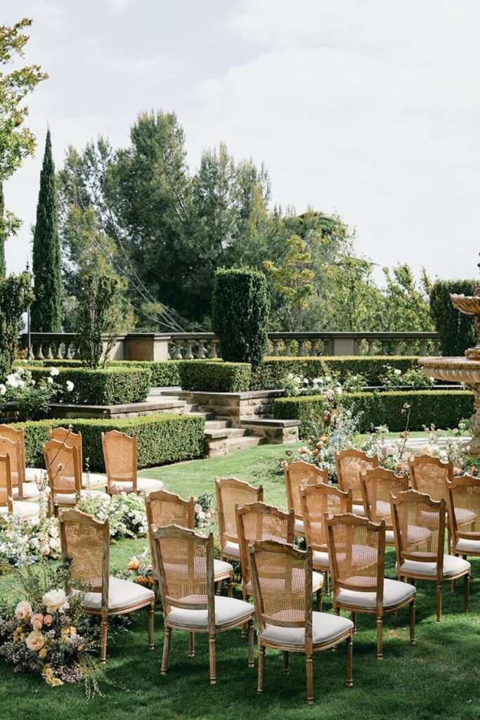 If you love timeless elegance, a formal garden ceremony gives built-in beauty, structured greenery, and symmetry.