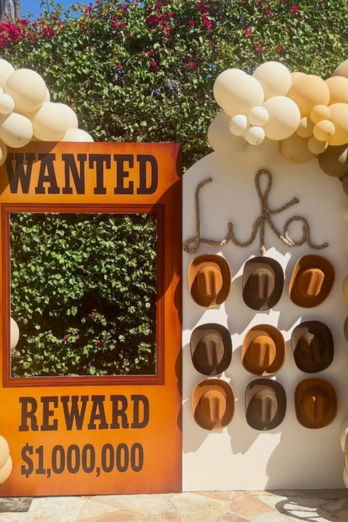 Here’s a playful detail guests always gravitate toward: a “Wanted” photo frame. It turns a simple photo opportunity into something interactive and memorable.