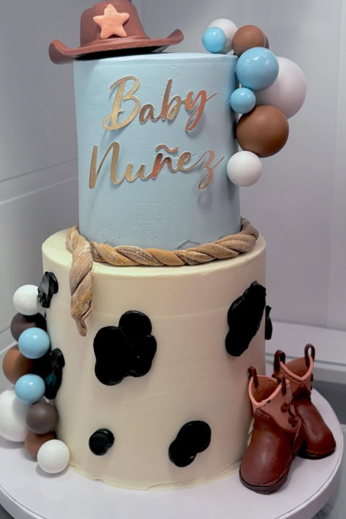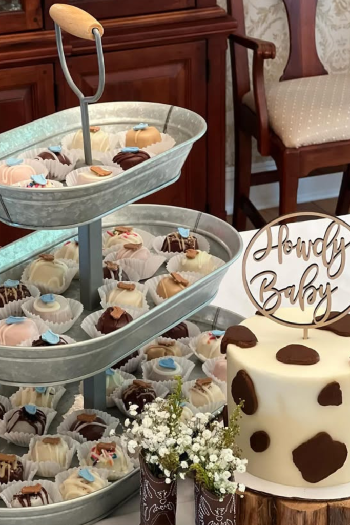 Pair it with a small “Howdy Baby” cake, cow-print accents, and tiny boot decorations to keep everything consistent.