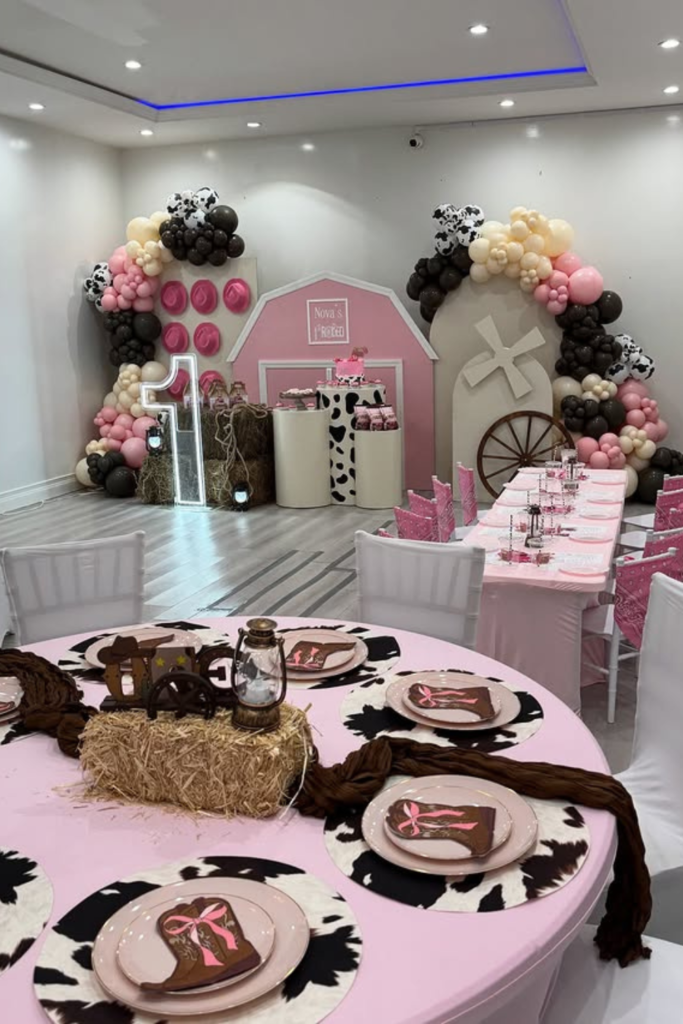If you’re going for a full cowgirl vibe, transforming the entire room around a pink rodeo theme makes the celebration feel immersive.