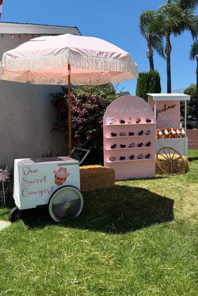 It works especially well if you’re leaning into a cowgirl theme with soft pinks or playful colors.