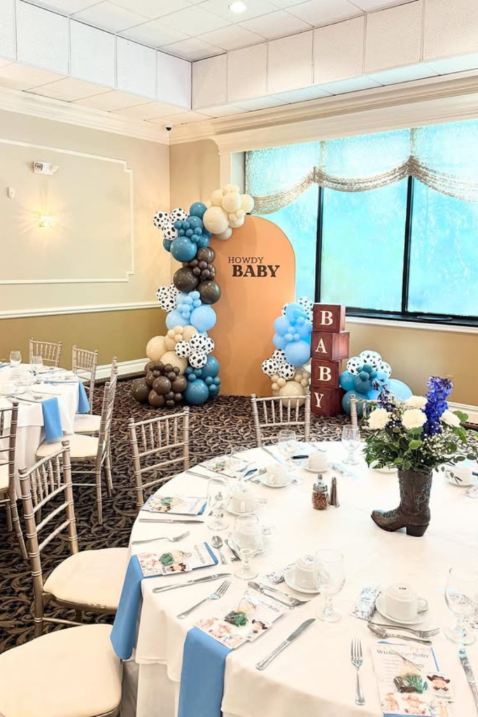 If you’re working with a banquet hall or indoor venue, carving out a small “Howdy Baby” photo corner is a simple way to introduce the theme without redesigning the whole room.