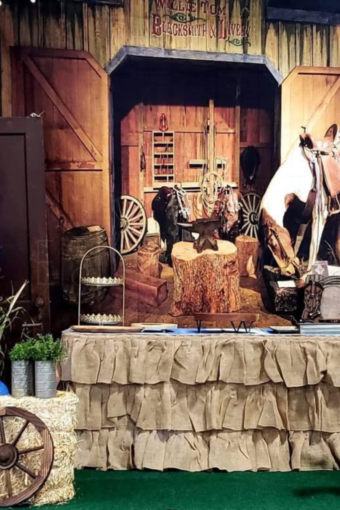 Using it as a backdrop instantly brings in that country picnic vibe that pairs perfectly with cowboy themes.