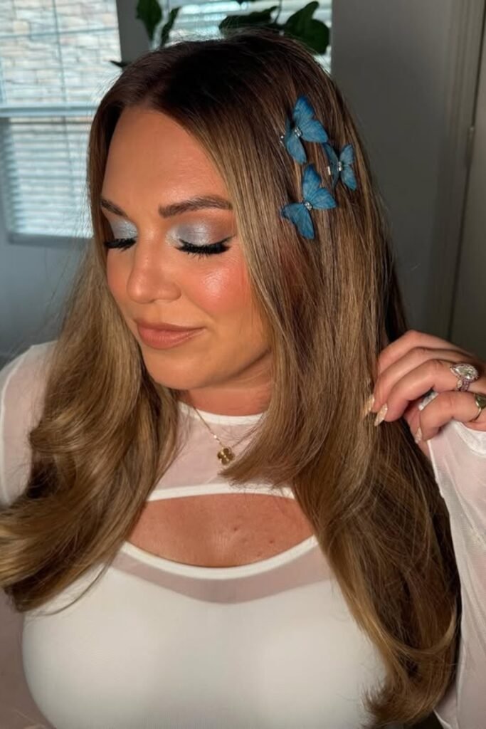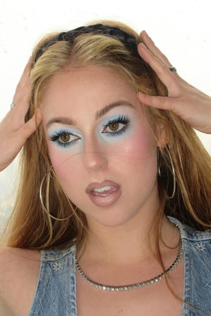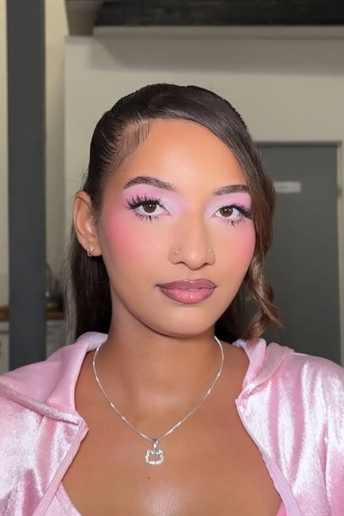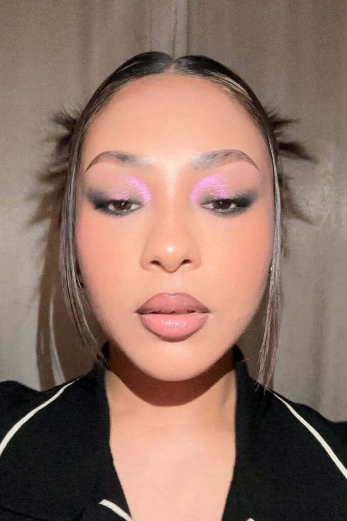 Pair it with a lilac lip gloss and soft, natural brows to balance the bold eyes while keeping the fresh, early 2000s vibe alive.