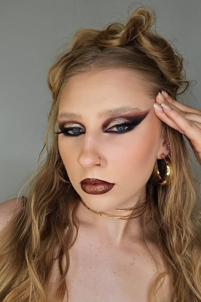 This bold look works perfectly for evening events when you want a mix of intensity and shine.