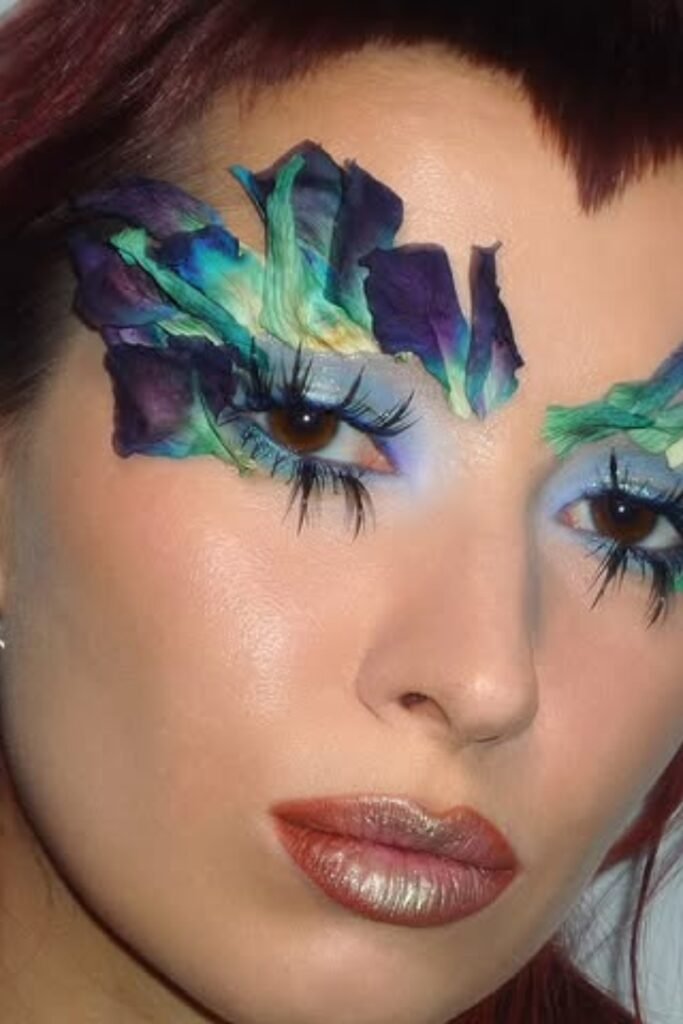 You can attach fake flower petals above your eyelids and blend them into a light blue eyeshadow for a dreamlike effect.