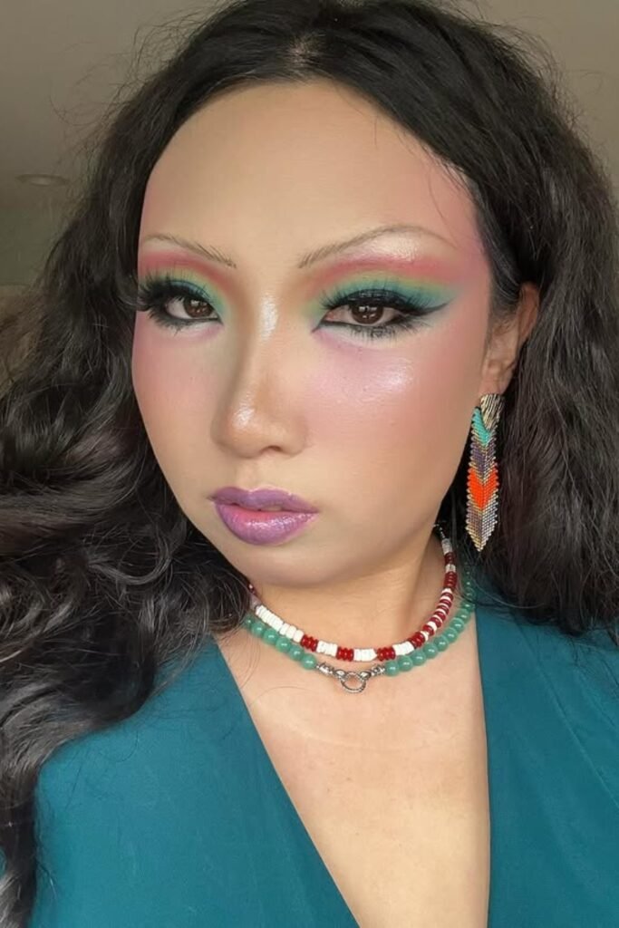 This colorful look is perfect for festivals or creative photoshoots when you want a dramatic, early 2000s vibe.