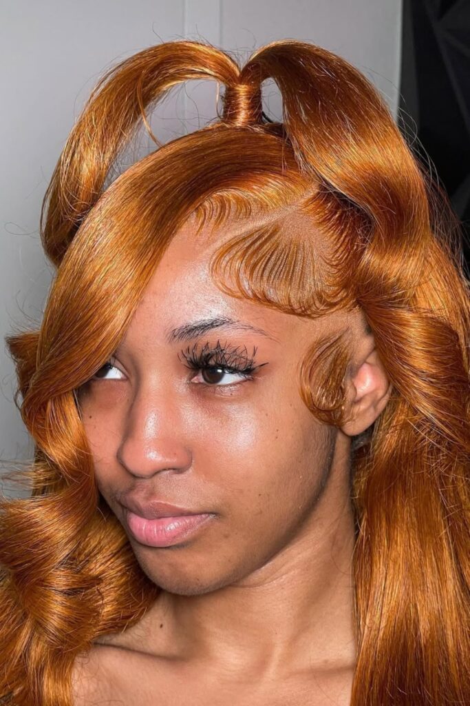 Copper Loop Curls captivates with its rich, shimmering copper tones and innovative looped top knots that sit playfully at the crown.